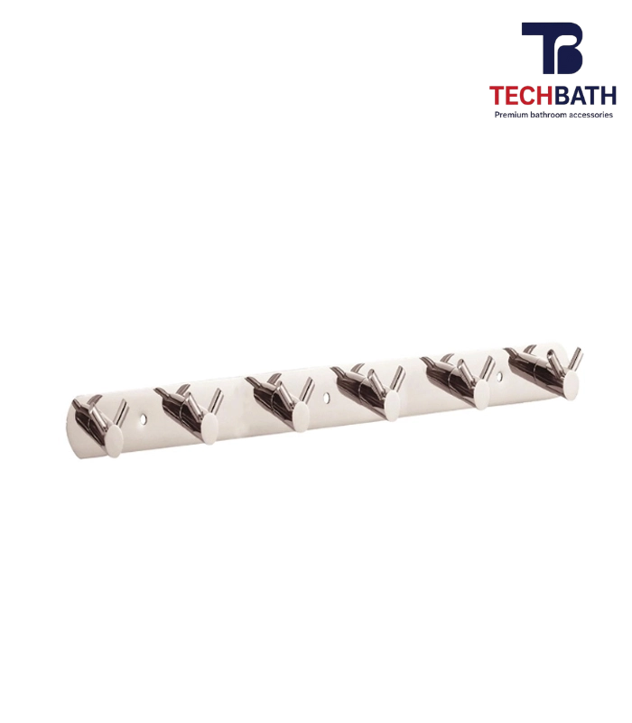 Ngoại hình sáng bóng đặc trưng, thiết kế phối hợp hài hoà giữa những đường nét mềm mại lẫn góc cạnh đậm tính kỹ thuật, móc treo quần áo inox 304 TECHBATH T1203.12 xứng đáng nằm trong bộ dụng cụ cho bất kỳ công trình nào.