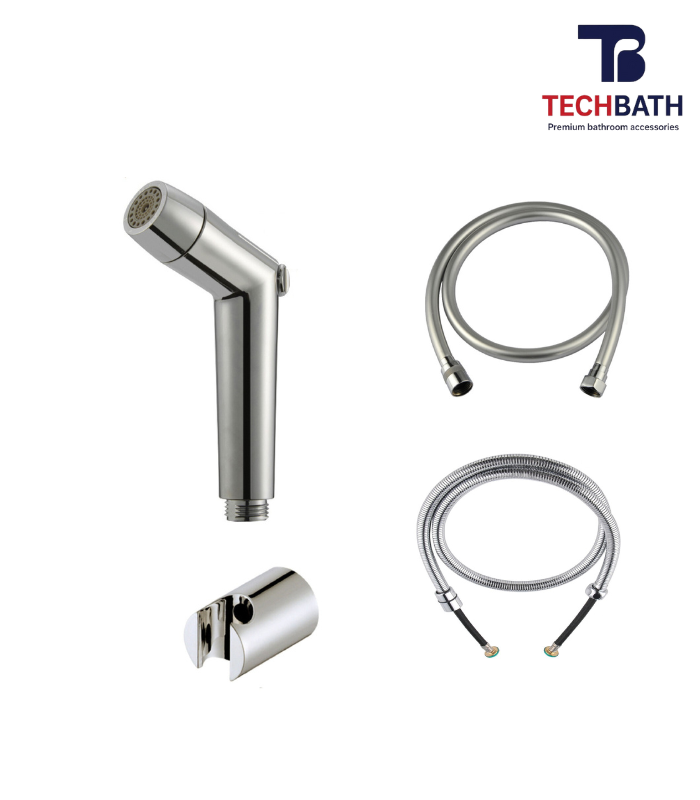 Vòi xịt vệ sinh TECHBATH T2302.03 với hai sự lựa chọn dây mạ (T2301.03) và dây nhựa (T2302.03).