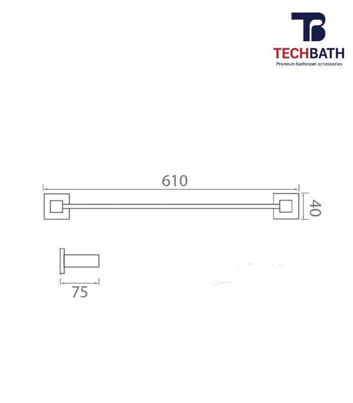 Vắt khăn đơn TECHBATH T1407.01 có kích thước nhỏ gọn 610x75x40mm và được gia công tỉ mỉ từ chất liệu inox 304 cao cấp.