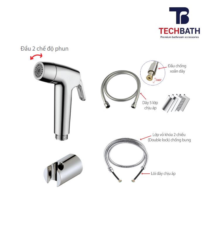 Vòi xịt bồn cầu TECHBATH T2301.02 Khoảng giá: từ 680.000 ₫ đến 970.000 ₫