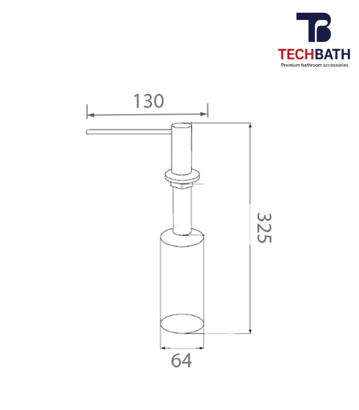 Bình xịt xà phòng TECHBATH T1816.02 có kích thước nhỏ gọn 64x1300x325mm không chiếm quá nhiều diện tích nhưng lại cho một dung tích tuyệt vời lên tới 500ml.